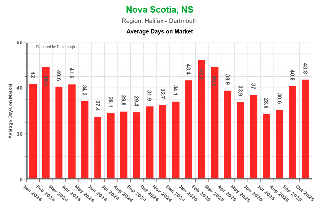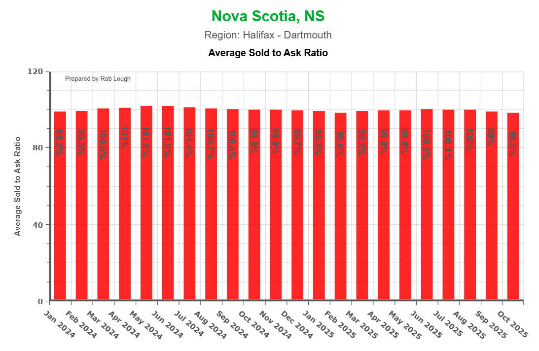 The high sold-to-ask ratio demonstrates that the Halifax-Dartmouth market remains competitive and favorable for sellers. While the slight decline from peak summer levels suggests buyers have marginally more negotiating power than during the height of the market, properties are still selling for very close to their list price. This indicates that well-priced homes continue to attract strong offers, though buyers may be securing small concessions or price adjustments more frequently than in previous months.